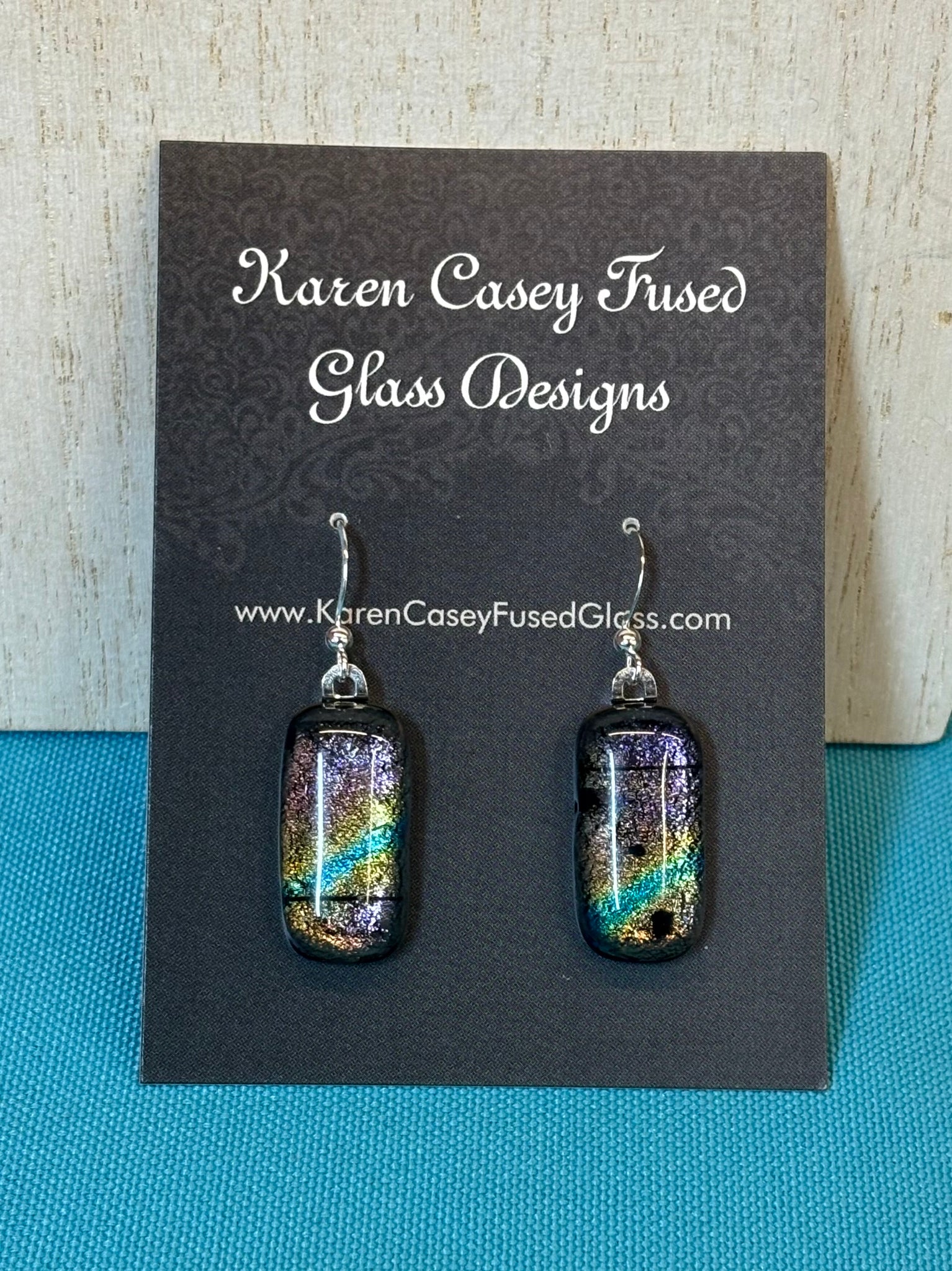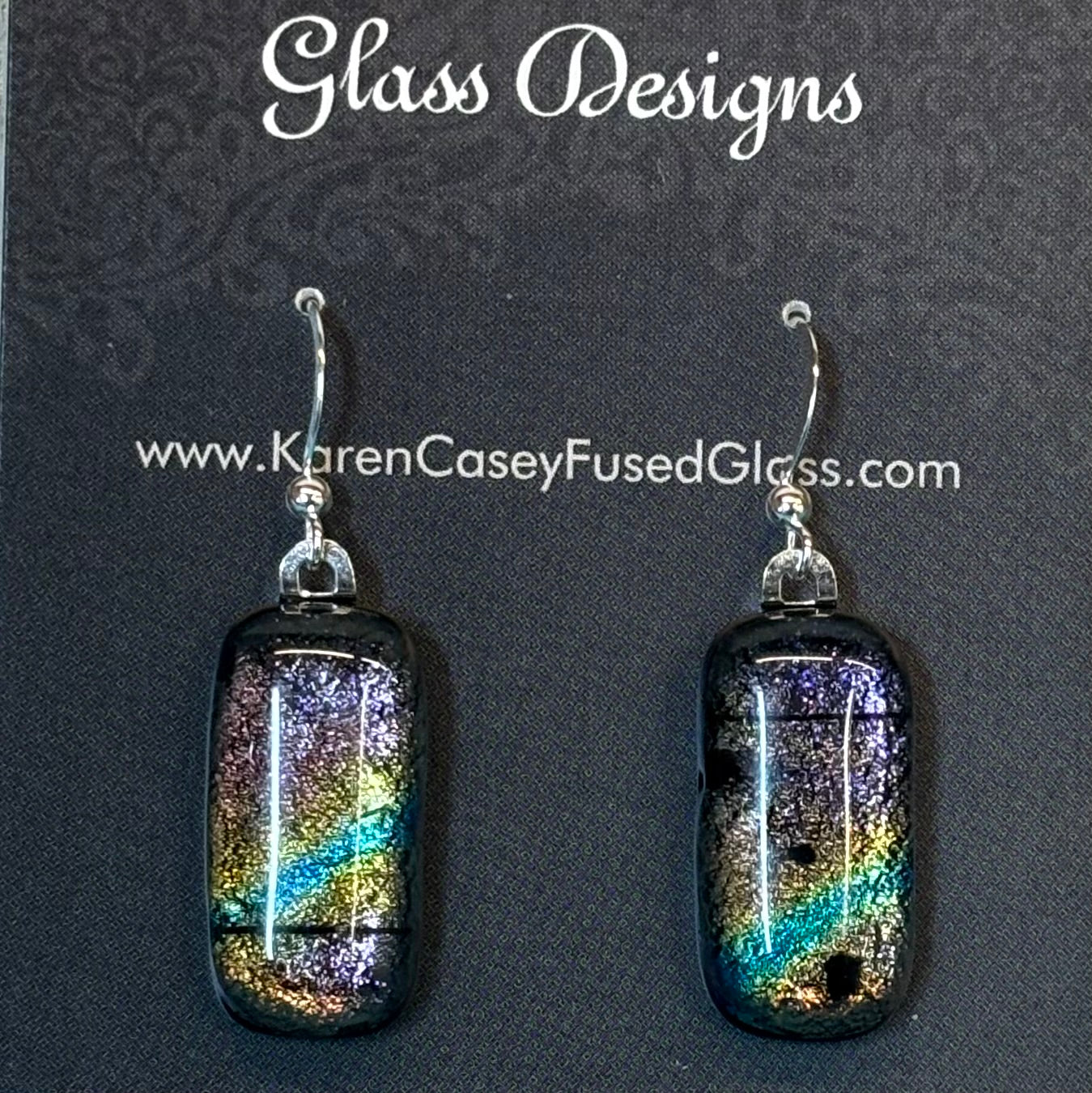 Dichroic earrings add that sparkle and change colors depending on the angle from which they are viewed. This dazzle dichroic glass adds interest and a completely unique look!